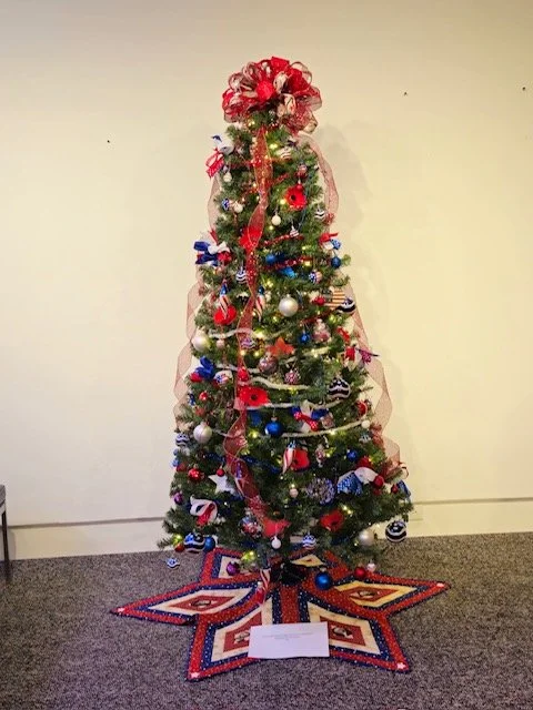 Plank Road was asked by the American Legion Auxiliary to make a Christmas Tree Skirt for the Tree they are donating to the Festival of Trees at the Everson Museum. The Festival of Trees has been an annual fund raiser for the Everson Museum for over 40 years. Several of the Guild members got together and made a beautiful tree shirt to enhance the festive tree.